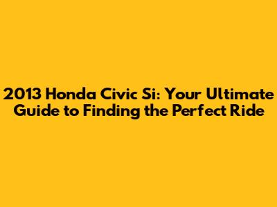 2013 Honda Civic Si: Ultimate Buyer's Guide