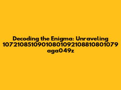 Alright guys, let's dive into the mysterious realm of 10721085109010801092108810801079 aga049z. What could this possibly be? At first glance, it looks like a random string of numbers and letters thrown together. But in the vast landscape of digital information, nothing is truly random. Our mission today is to unravel this enigma, explore potential meanings, and brainstorm possible contexts in which this sequence might appear. We'll put on our detective hats and see what we can dig up! Think of it as a digital scavenger hunt where the prize is understanding. So, buckle up and let's get started on this intriguing journey of decoding and discovery!