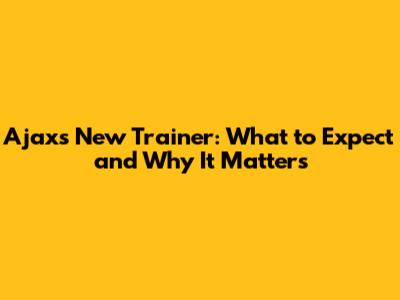 Ajax's New Trainer: What To Expect And Why It Matters