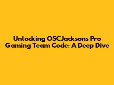 Unlocking OSCJackson's Pro Gaming Team Code: A Deep Dive