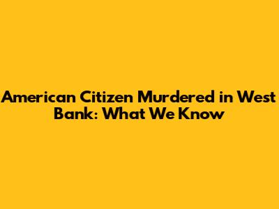 American Citizen Murdered In West Bank: What We Know
