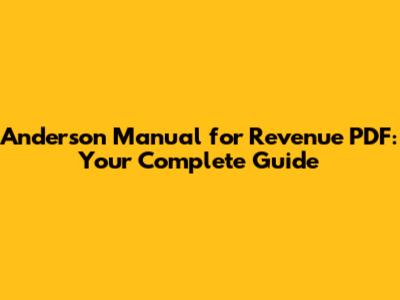 Anderson Manual For Revenue PDF: Your Complete Guide
