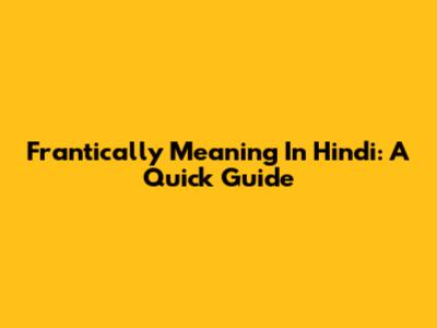 Frantically Meaning In Hindi: A Quick Guide