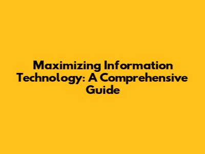 Maximizing Information Technology: A Comprehensive Guide