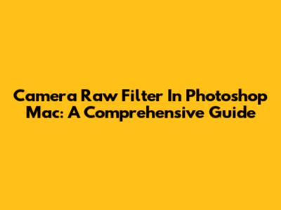 Camera Raw Filter In Photoshop Mac: A Comprehensive Guide