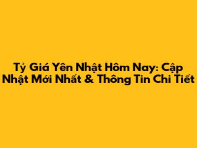 Tỷ Giá Yên Nhật Hôm Nay: Cập Nhật Mới Nhất & Thông Tin Chi Tiết