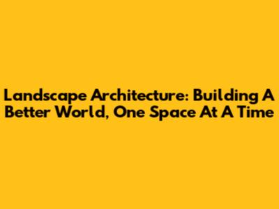 Landscape Architecture: Building A Better World, One Space At A Time