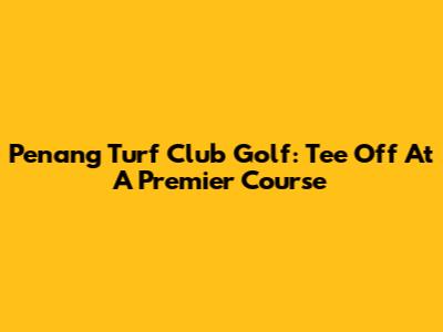 Penang Turf Club Golf: Tee Off At A Premier Course