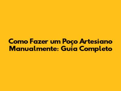 Como Fazer Um Poço Artesiano Manualmente