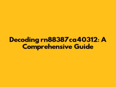 Let's dive into understanding what rn88387ca40312 actually means. This guide aims to provide a comprehensive overview, exploring potential contexts, interpretations, and practical implications related to this alphanumeric string. Whether you've stumbled upon it in a technical document, a database entry, or some other mysterious place, we're here to break it down for you.