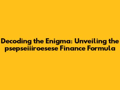 Decoding The Enigma: Unveiling The 'psepseiiiroesese' Finance Formula
