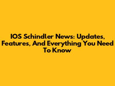 IOS Schindler News: Updates, Features, And Everything You Need To Know