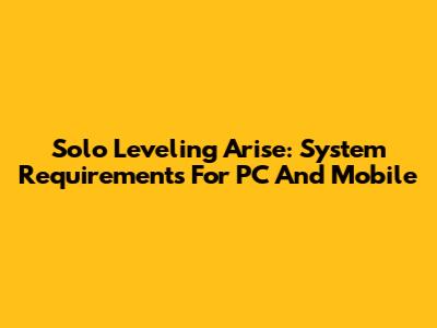 Solo Leveling Arise: System Requirements For PC And Mobile