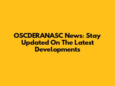 OSCDERANASC News: Stay Updated On The Latest Developments