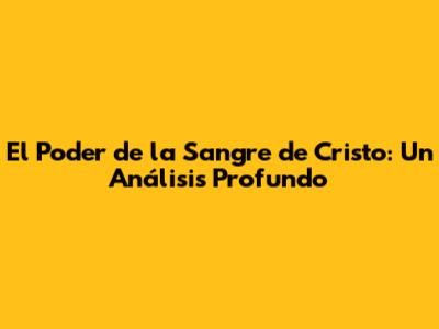 El Poder De La Sangre De Cristo: Un Análisis Profundo