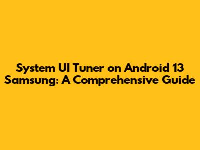 Hey guys! Ever felt like you wanted to tweak your Samsung's Android 13 interface just a little bit more? Maybe change some of those quick settings tiles or get rid of that pesky notification icon? That's where the System UI Tuner comes in handy! This hidden tool in Android gives you extra control over your device's look and feel. While it's not officially supported by Samsung, there are ways to enable it and unlock some cool customization options. Let's dive in and explore how you can unleash the System UI Tuner on your Samsung Android 13 device.