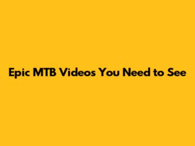 Epic MTB Videos You Need To See