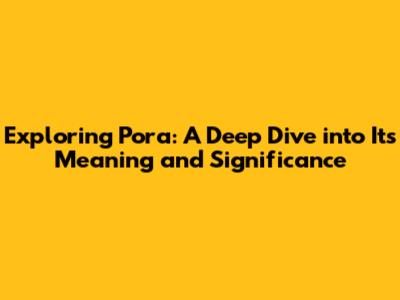Exploring Pora: A Deep Dive Into Its Meaning And Significance
