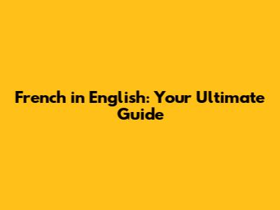 French In English: Your Ultimate Guide