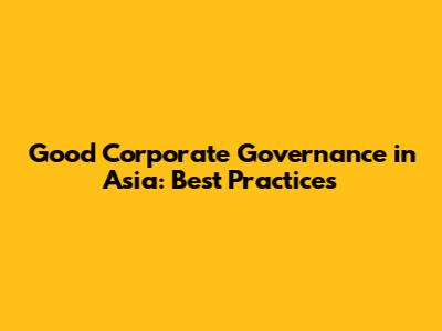 Good Corporate Governance In Asia: Best Practices