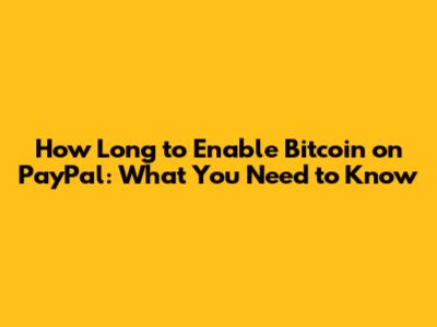 Hey guys! Ever wondered how long it takes to enable Bitcoin on PayPal? You're not alone! With the growing popularity of cryptocurrencies, many users are keen to integrate digital currencies into their everyday transactions. PayPal, being a leading digital payment platform, has also embraced this trend, allowing users to buy, sell, and hold cryptocurrencies directly through their accounts. But, before you jump in, it’s crucial to understand the process and the timeline involved in enabling Bitcoin and other cryptocurrencies on your PayPal account. So, let's dive right into the details and get you up to speed on everything you need to know about enabling Bitcoin on PayPal. This comprehensive guide will walk you through each step, from setting up your account to navigating the verification processes, ensuring you're well-prepared to start using Bitcoin on PayPal. By understanding the requirements and potential delays, you'll be able to manage your expectations and get started with crypto transactions smoothly. Plus, we'll touch on some tips and tricks to speed up the process and avoid common pitfalls. Whether you're a crypto newbie or a seasoned investor, this article is designed to provide you with all the essential information for a seamless experience with Bitcoin on PayPal. Let's get started and unlock the world of digital currency at your fingertips! Understanding the timeframe helps you plan your crypto activities effectively and integrate digital currencies into your financial routines with confidence. So, stick around and let's make the most of this exciting feature on PayPal!