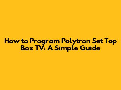 Programming Your Polytron Set Top Box