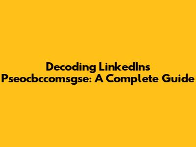 Decoding LinkedIn's Pseocbccomsgse: A Complete Guide
