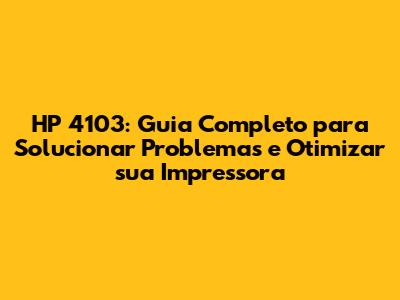 HP 4103: Guia Completo Para Solucionar Problemas E Otimizar Sua Impressora
