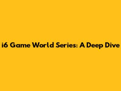 I6 Game World Series: A Deep Dive