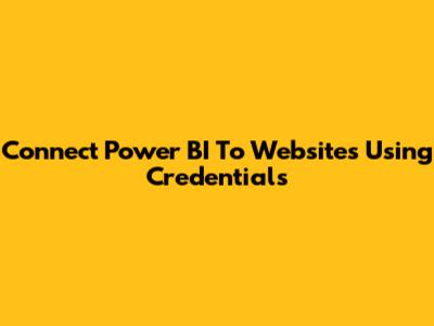 Connect Power BI To Websites Using Credentials