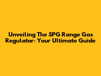 Unveiling The SPG Range Gas Regulator: Your Ultimate Guide