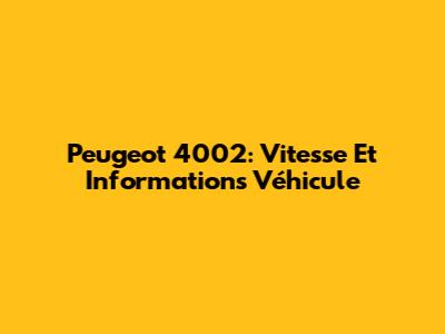 Peugeot 4002: Vitesse Et Informations Véhicule