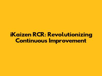 Hey guys! Ever heard of iKaizen RCR and wondered what the buzz is all about? Well, buckle up because we're diving deep into how this innovative approach is revolutionizing continuous improvement. Forget those old, clunky methods – iKaizen RCR is here to make things smoother, faster, and way more effective. Let’s break it down and see why everyone's talking about it.