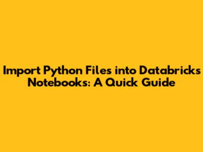 Hey everyone! Ever found yourself wrestling with how to get your custom Python code into your Databricks notebooks? You know, those handy utility functions, complex classes, or maybe even a whole library you’ve built that you want to reuse across different notebooks. Well, you’re in the right place, guys! Importing Python files into Databricks notebooks is a super common task, and thankfully, it’s not as complicated as it might seem at first. We're going to break down the easiest and most effective ways to do this, so you can spend less time fiddling with file paths and more time crunching data and building awesome models. Let's dive in!