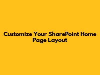 Customize Your SharePoint Home Page Layout