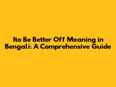 Hey guys! Understanding different phrases and their meanings across languages can be super interesting and helpful. Today, we're diving into the meaning of "to be better off" in Bengali. This phrase is used all the time in English, and knowing how to express the same idea in Bengali can seriously level up your language skills. So, let’s get started and explore how to say "to be better off" in Bengali, along with some cool examples and related phrases. Trust me, by the end of this article, you’ll be a pro at using this phrase in Bengali!