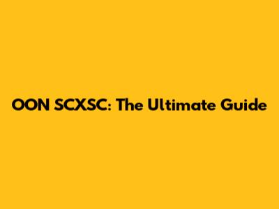 OON SCXSC: The Ultimate Guide