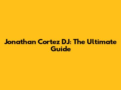 Jonathan Cortez DJ: Your Ultimate Guide