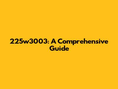 225w3003: A Comprehensive Guide