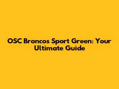 OSC Broncos Sport Green: Your Ultimate Guide