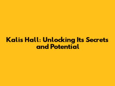 Kalis Hall: Unlocking Its Secrets And Potential