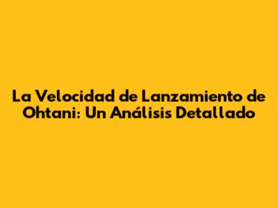 La Velocidad De Lanzamiento De Ohtani: Un Análisis Detallado