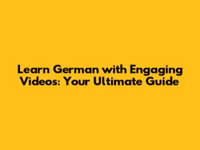 Learn German With Engaging Videos: Your Ultimate Guide