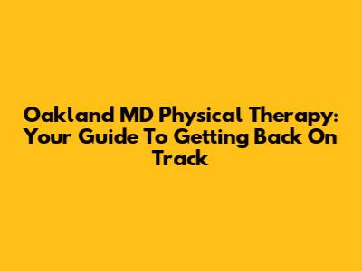 Oakland MD Physical Therapy: Your Guide To Getting Back On Track