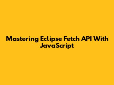 Mastering Eclipse Fetch API With JavaScript