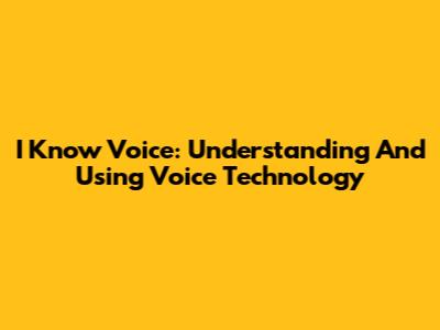 I Know Voice: Understanding And Using Voice Technology