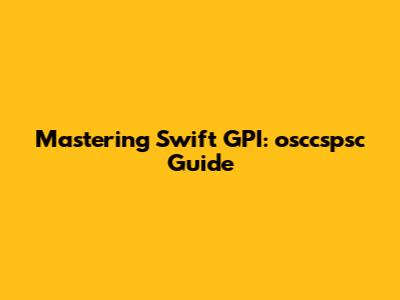 Hey guys! Ever wondered how to dive deep into Swift GPI and make the most out of osccspsc? Well, you're in the right place! This guide is designed to help you navigate the ins and outs of Swift GPI with a special focus on using osccspsc effectively. We'll break down everything from the basics to advanced techniques, ensuring you're well-equipped to tackle any project. So, let’s jump right in!