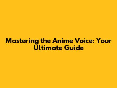 Mastering The Anime Voice: Your Ultimate Guide
