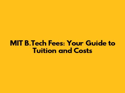 Understanding MIT B.Tech Tuition Fees
