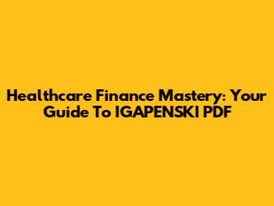 Healthcare Finance Mastery: Your Guide To IGAPENSKI PDF